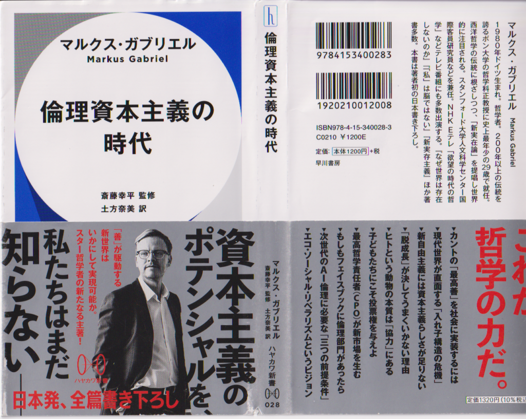 今回は、M.ガブリエルの『倫理資本主義の時代』(ハヤカワ新書、2024)を取り上げましょう。では、報告は松尾くん、ニャンで読んだの?