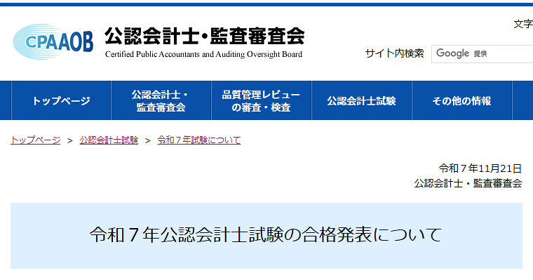 日本の難関国家資格の一つとされる公認会計士ですが、今年は11月21日、令和7年「公認会計士試験論文式」の合格者が発表されました。